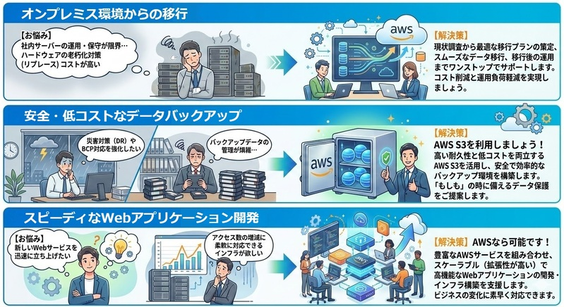 AWS認定パートナーである当社が、お客様の状況を丁寧にお伺いし、最適な活用法をご提案します。